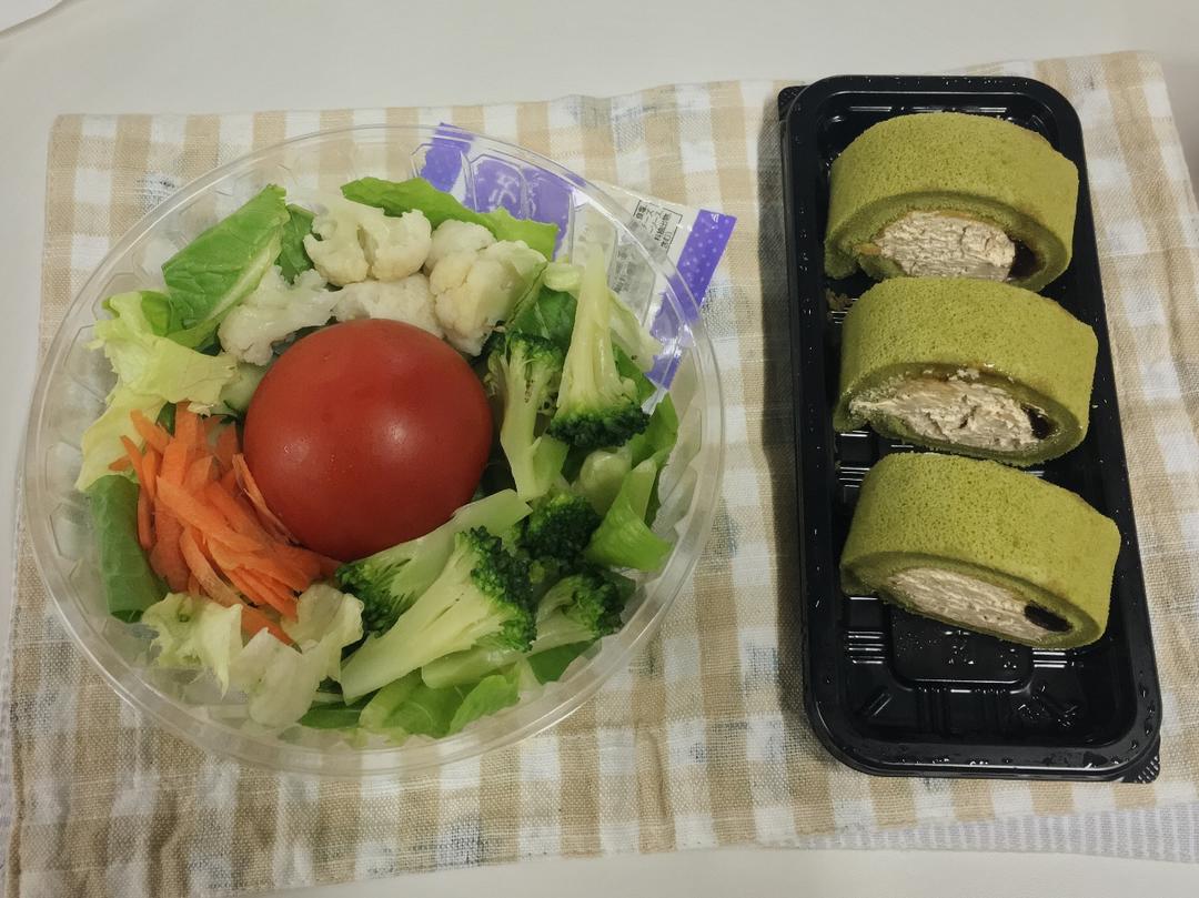 【简易凯撒沙拉+黑蜜黄豆粉奶油Q弹抹茶蛋糕卷】