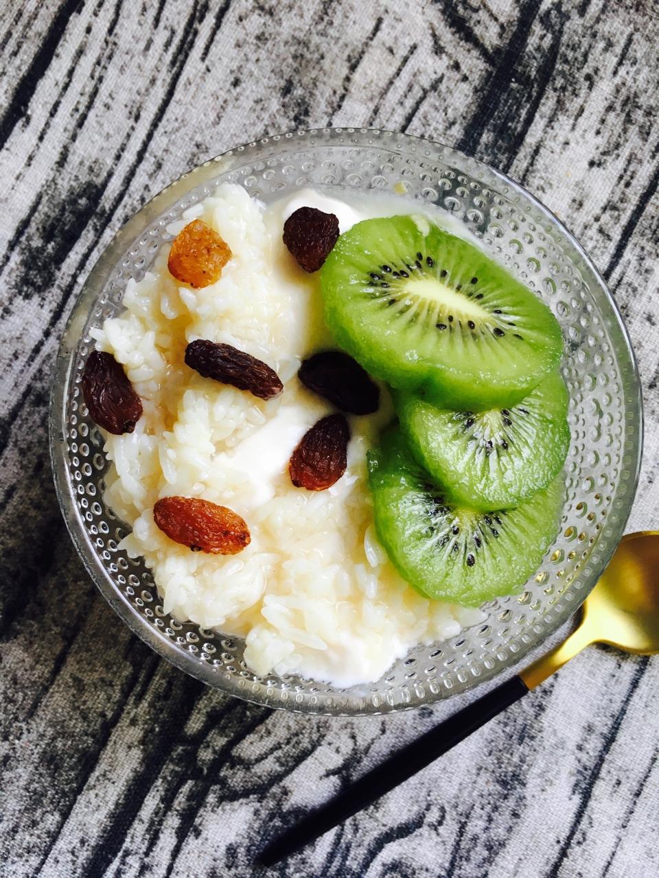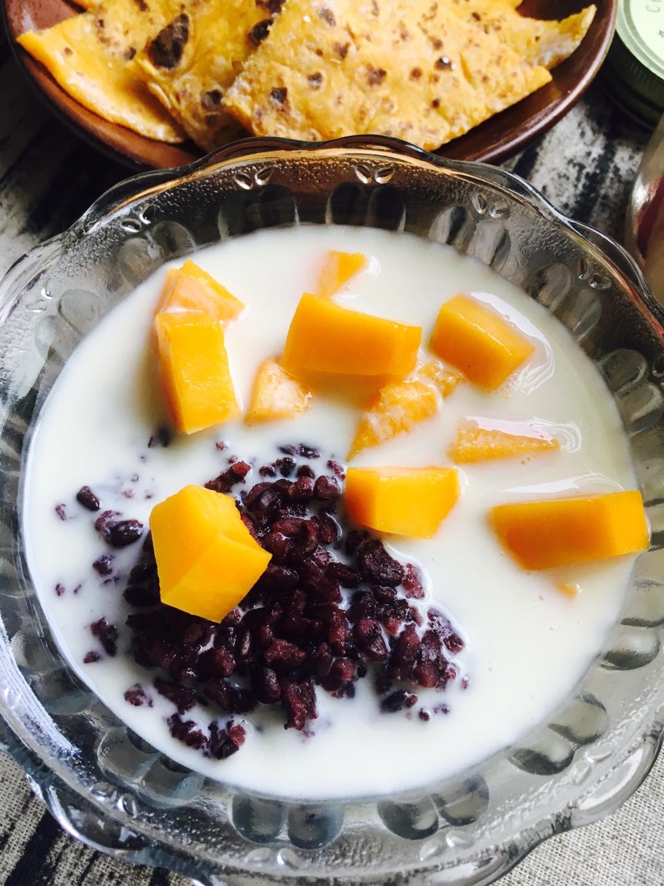 用紫米跟红米1:1一起煮的,酸奶也是刚做,搭配芒果的甜,刚刚好😋😋