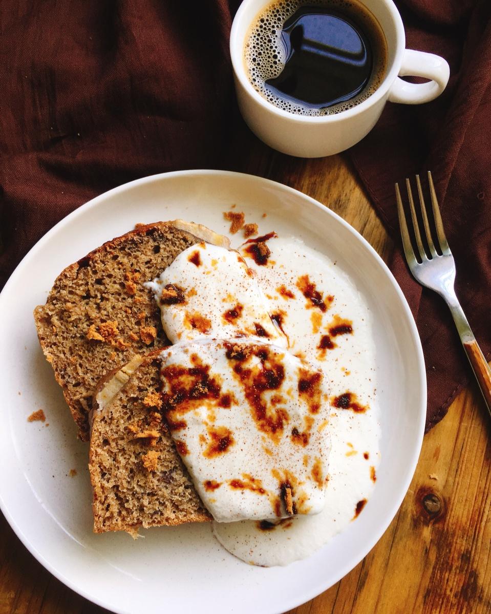 黑麦香蕉肉桂蛋糕,自制酸奶,黑咖啡