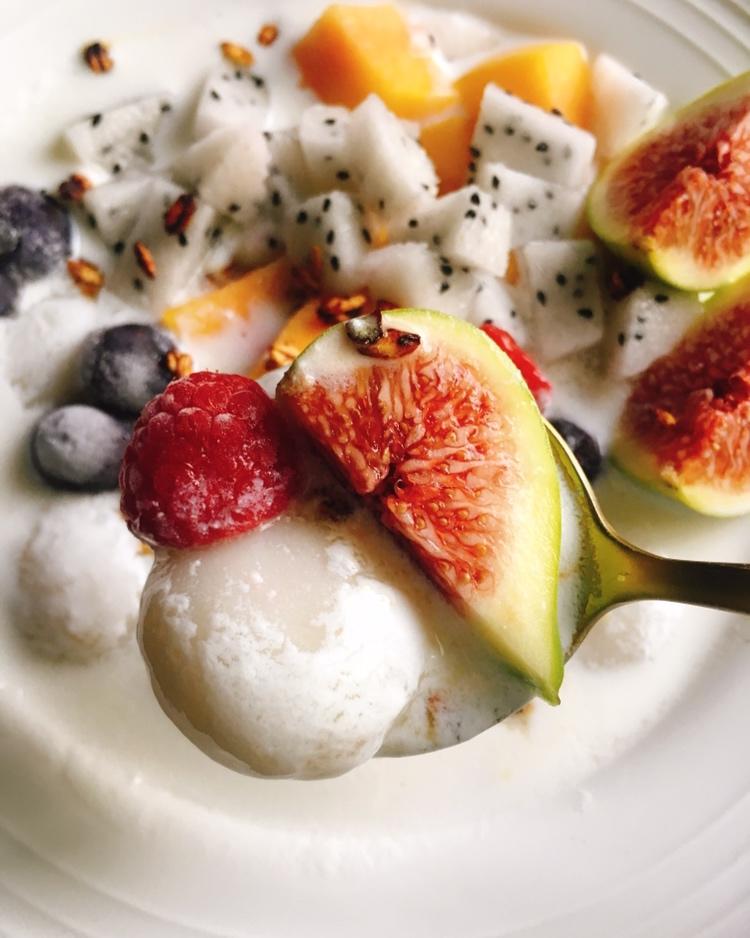 银耳、火龙果、西柚、无糖脱脂酸奶,榴莲,烤燕麦脆
