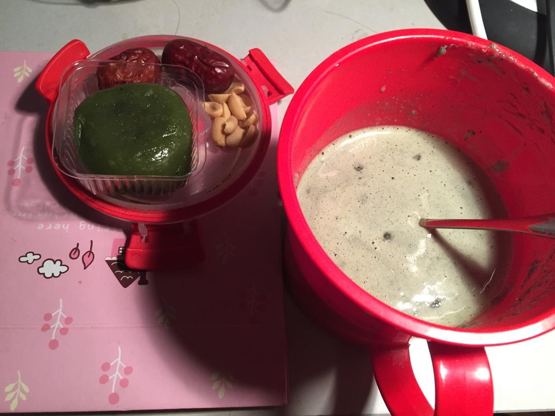 五谷养生粉,绿柳居的豆沙青团,红枣,坚果😛
