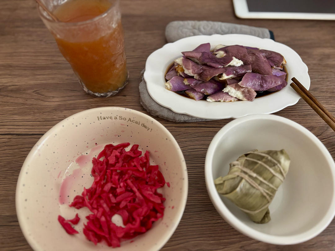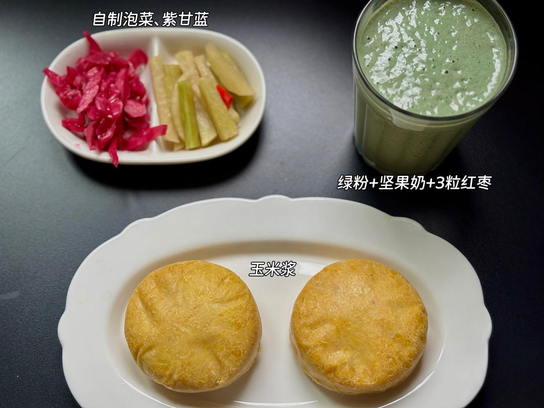 配上自制的蔬食馒头和昨日外食剩余的菜