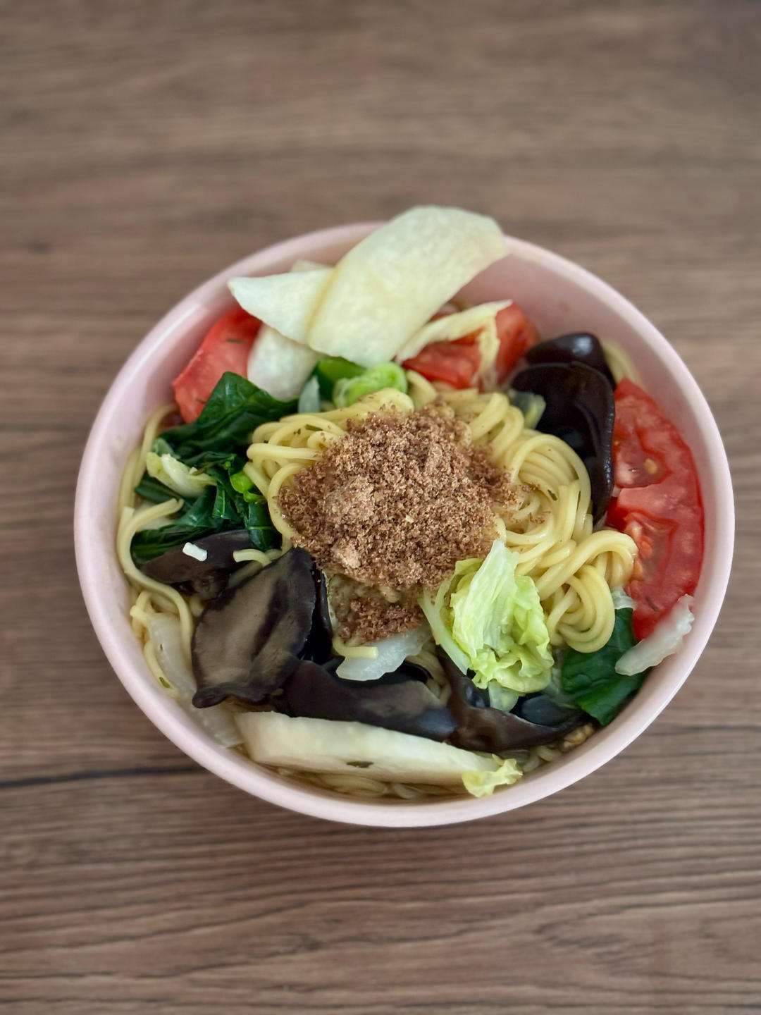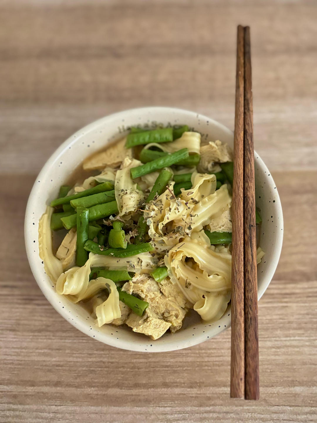 因为是小麦面条所以加了点麸皮