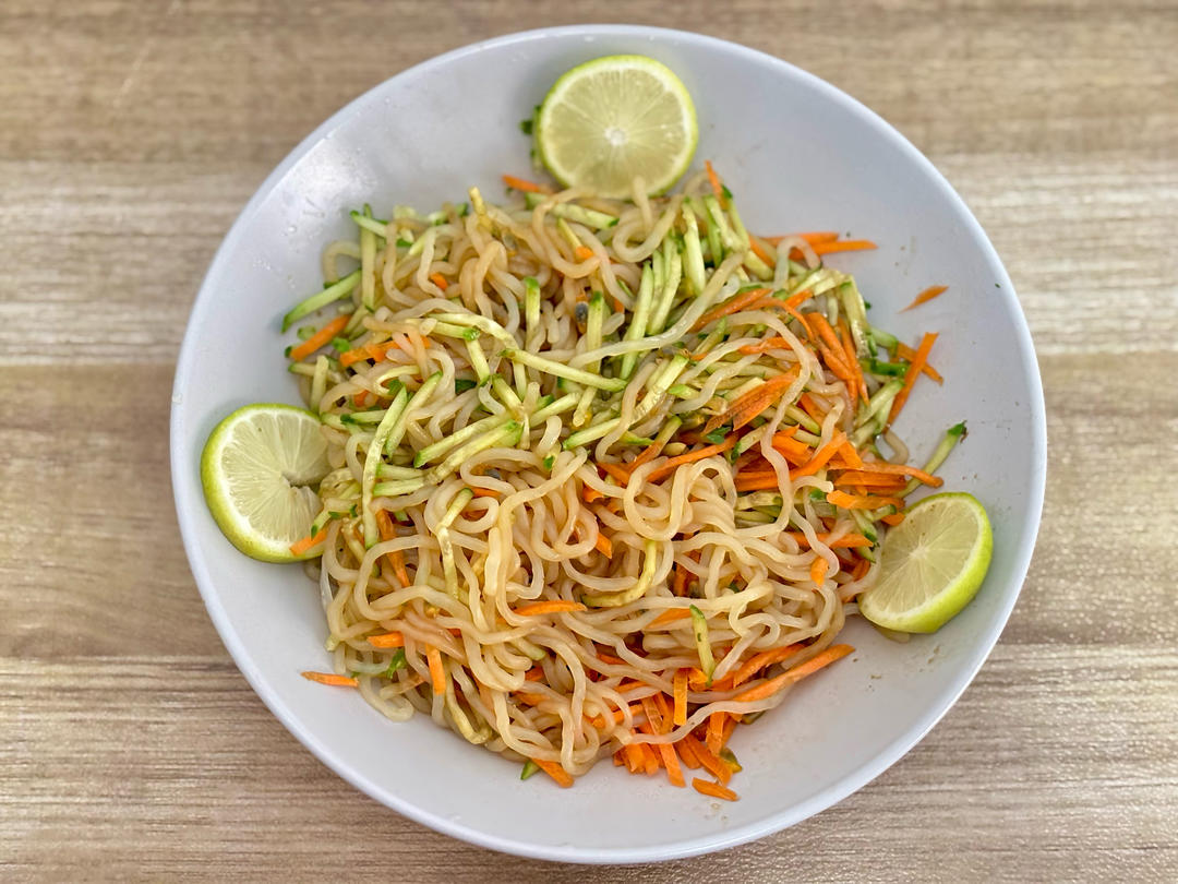 用柠檬和百香果拌的魔芋面,味道清爽可口