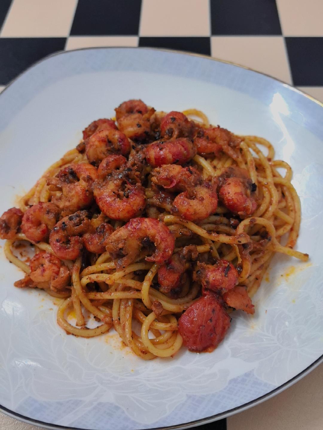 小龙虾拌面成功✓