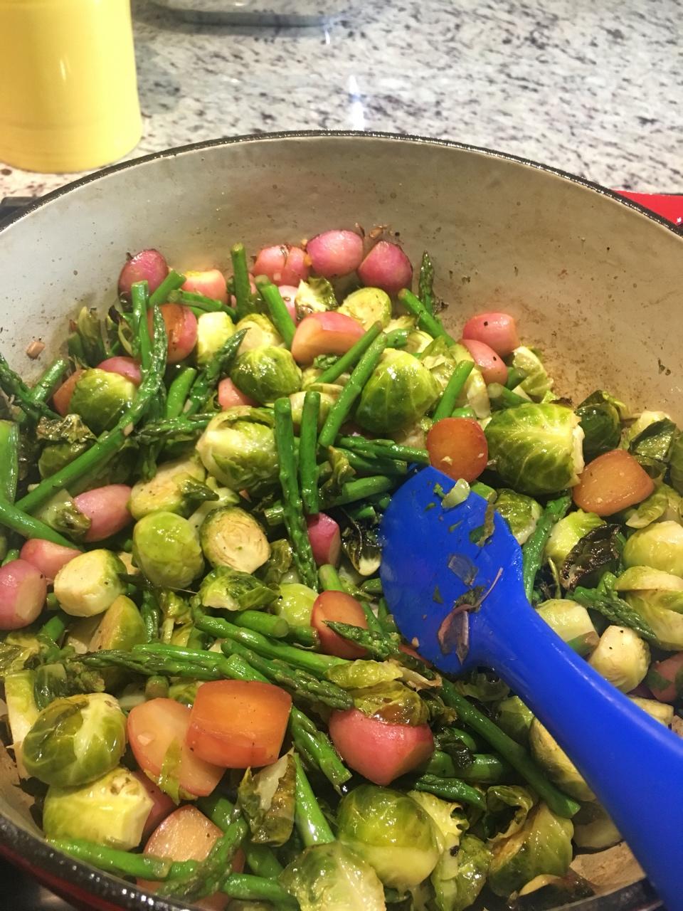 甘蓝、芦笋炒水萝卜