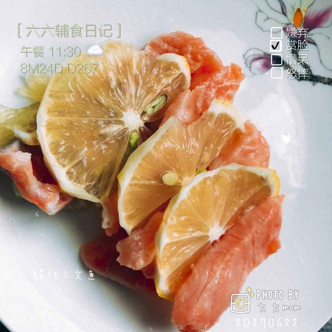 今天午餐解锁新食物三文鱼,配米粉吃的。昨天的辅食忘记上传了,补图。