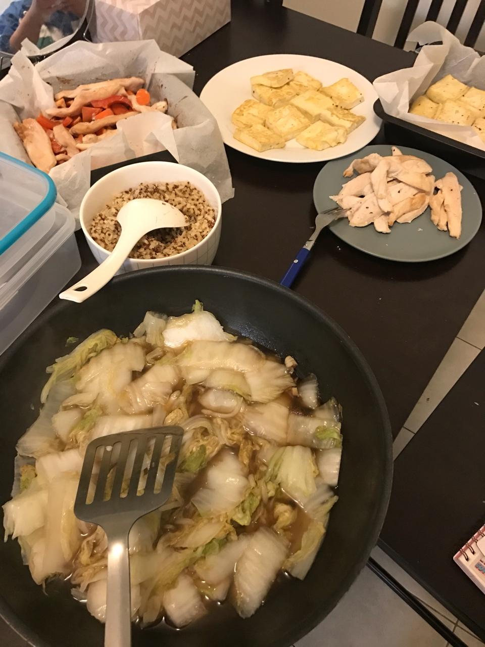 今天做了鸡胸烤蔬菜 鸡蛋煎豆腐 烤豆腐 醋溜白菜和煎鸡胸