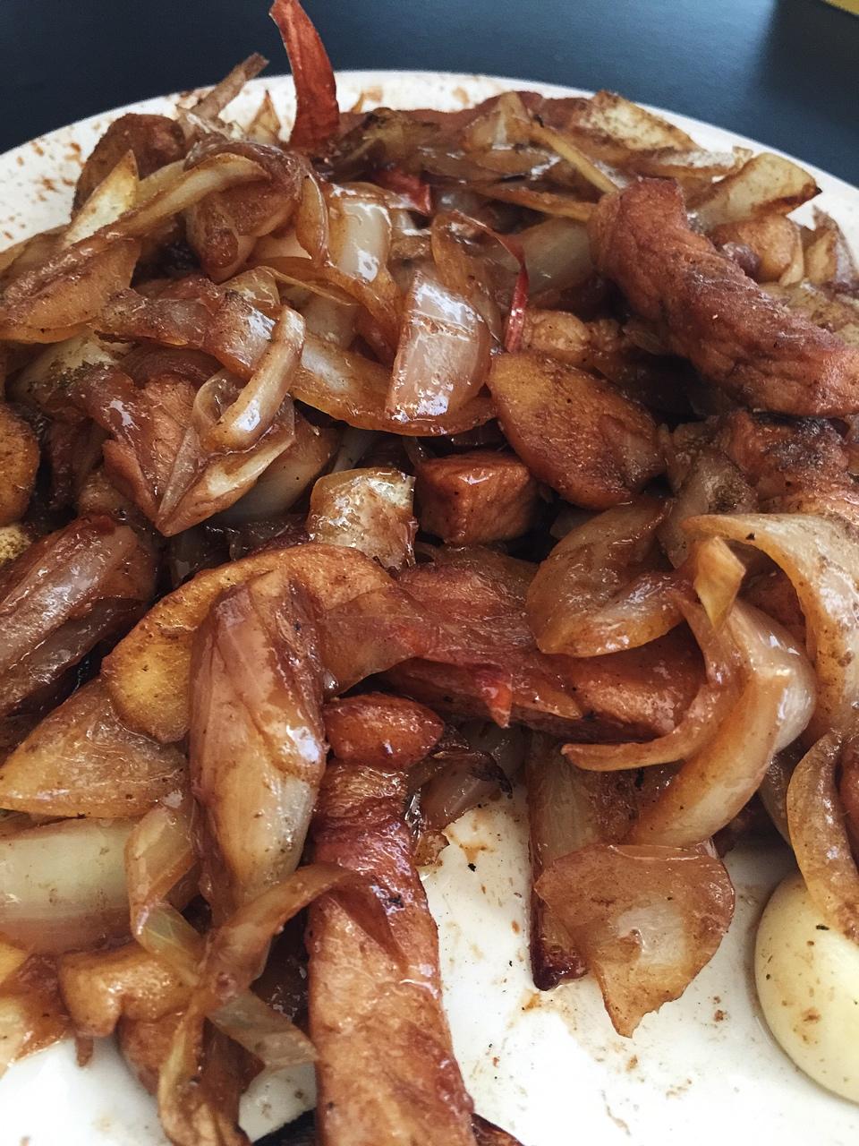 uk时间2017年6月18日19:35pm 自己做的孜然洋葱炒煎肉 肉比上次炒的好吃多了 #晚餐•2017年6月18日...