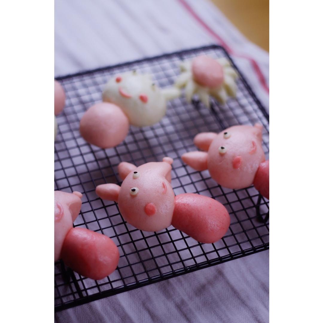 搓面团还挺好玩的,就是要揉光滑,动作迅速点。眼睛用芝麻贴上去的,面团还剩下一些呢起码可以多做一个...