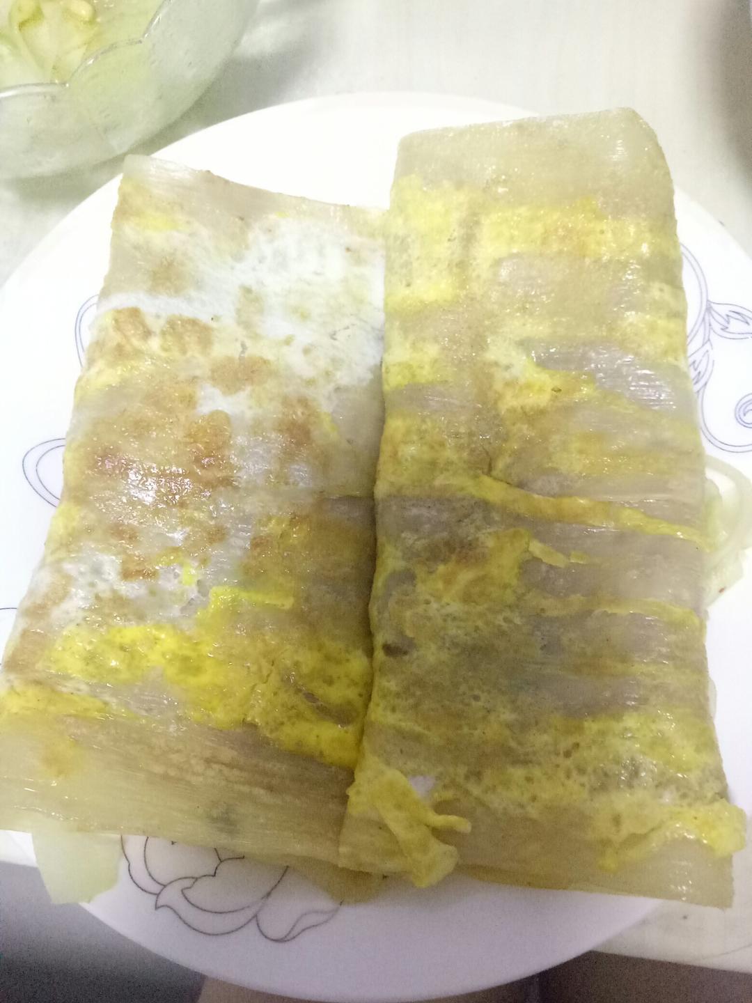 自制烤冷面,豆腐脑,水蒸蛋,还有芝麻酱菠菜