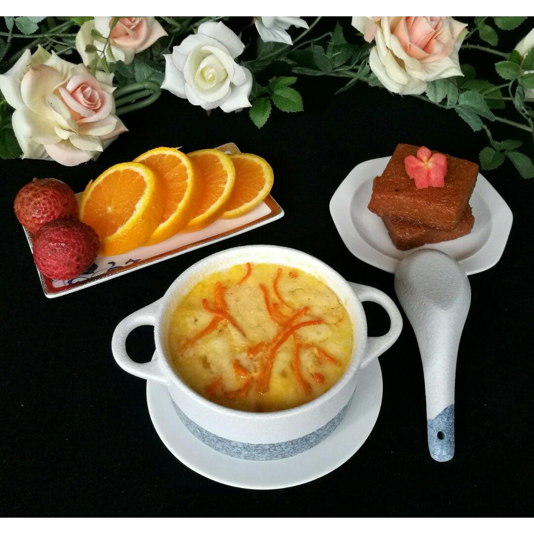 #虫草花蒸蛋+黄糯米饼+水果#