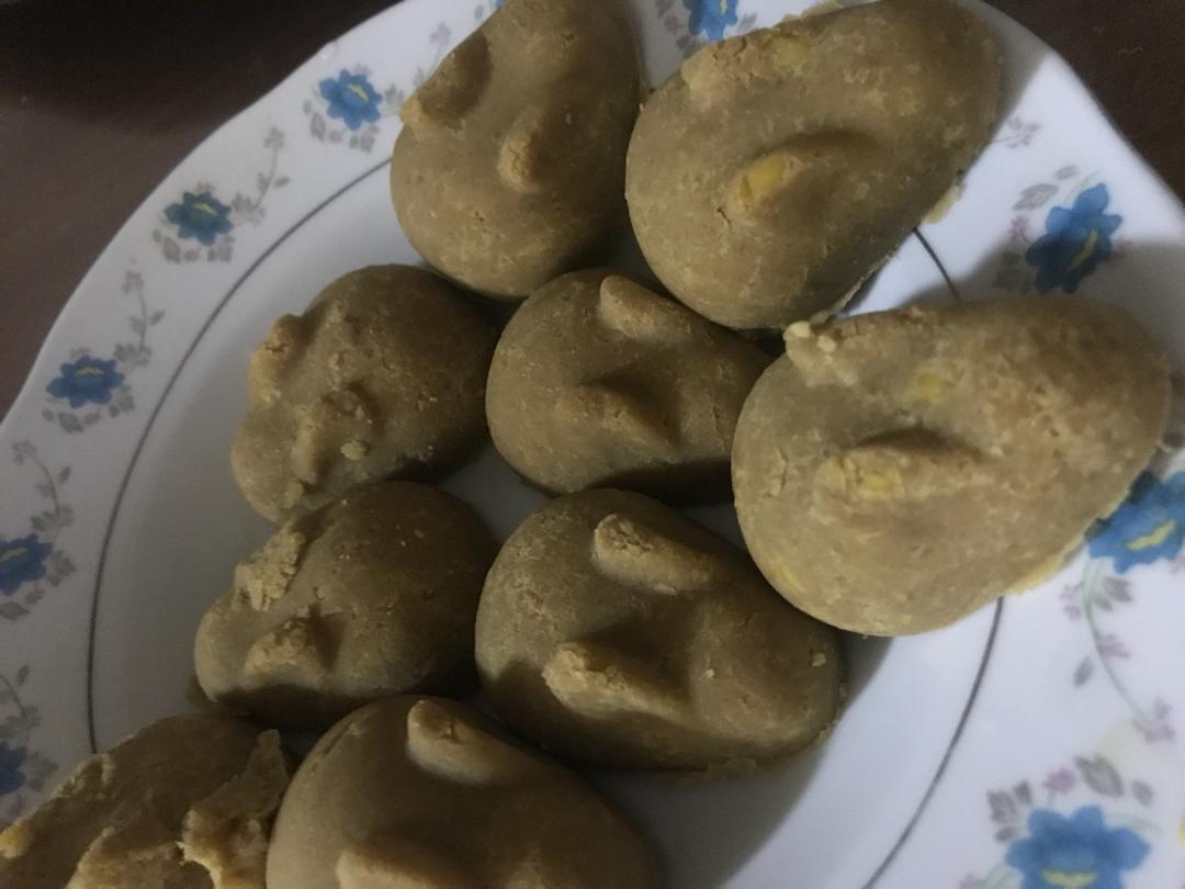 脱皮到怀疑人生,弄得不太干净,用高压锅刚刚漫过绿豆压出来正好,再用绞馅机搅碎,炒得胳膊疼,多加了20克糖还是不甜,成团了...