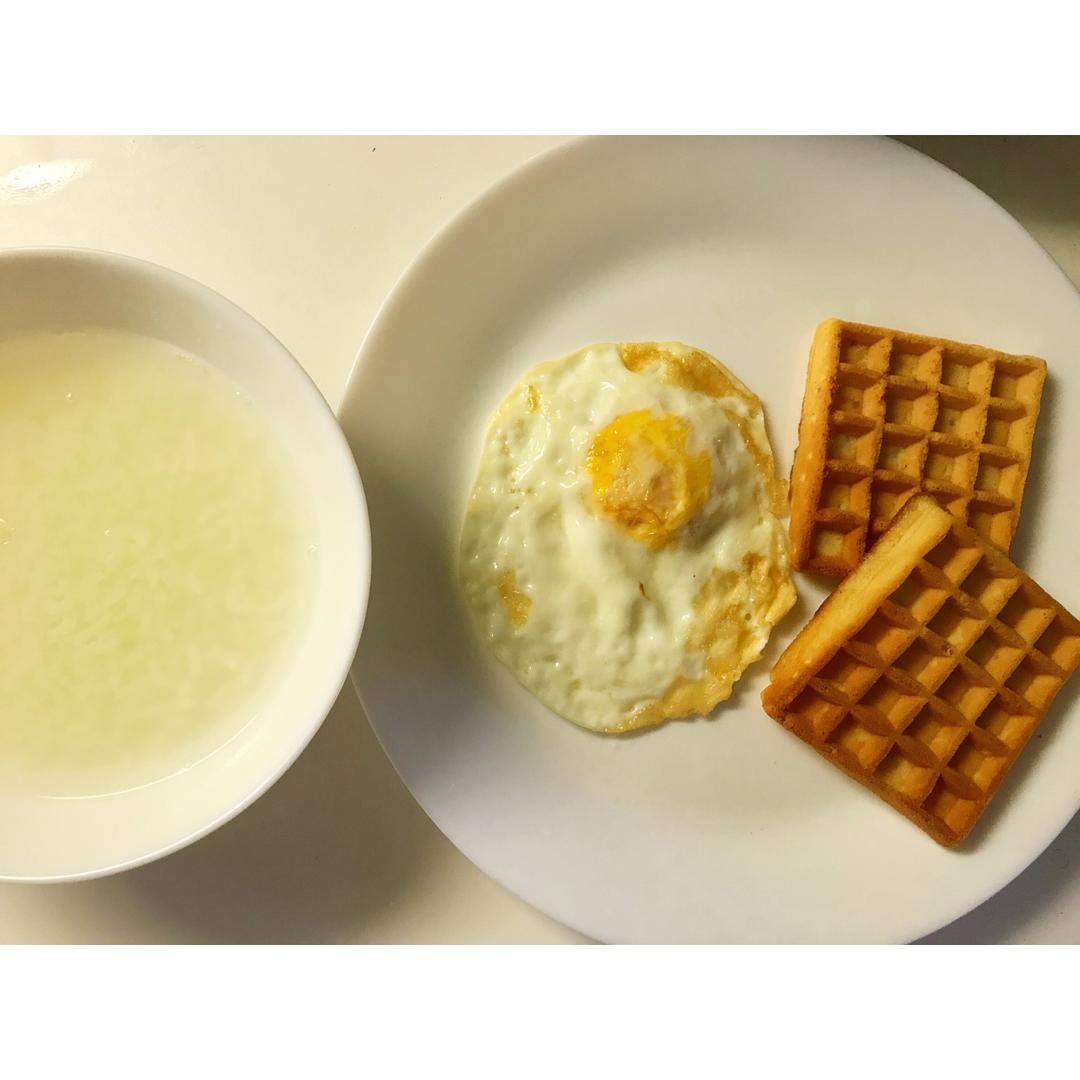 今天的极简早餐费了点功夫,煎了鸡蛋,煮了白粥~