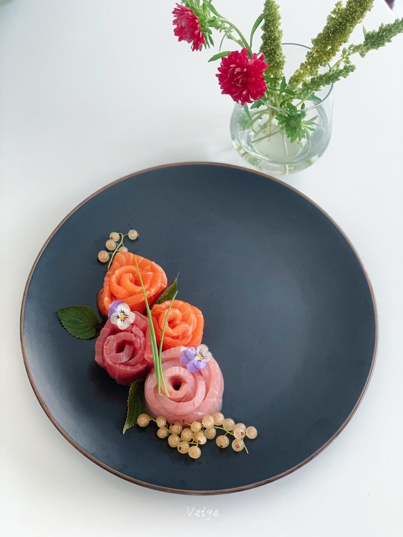 买了刺身,不过既然是节日就要来点形式感,朋友说摆成花形吧,完成~~~~...