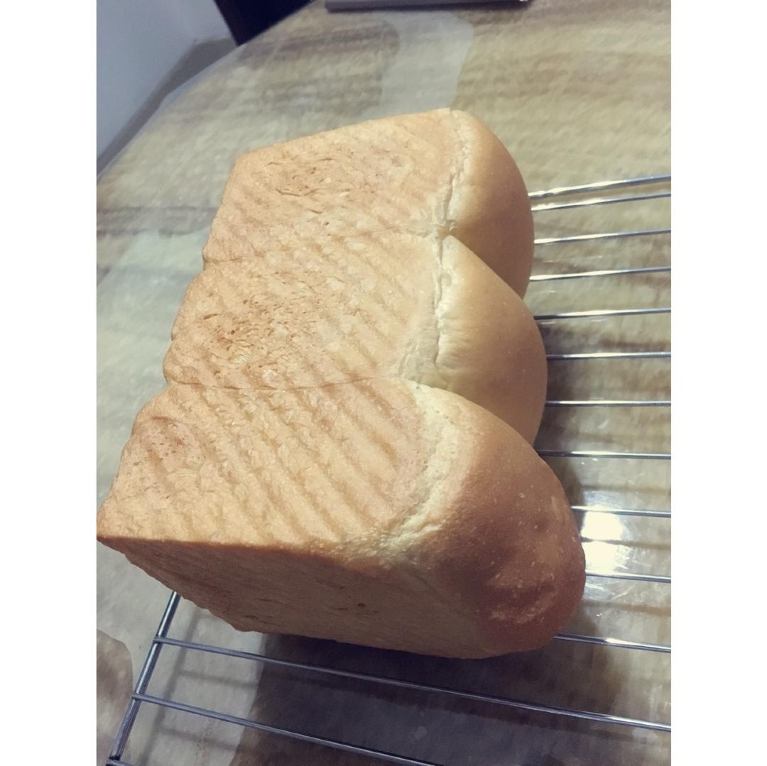 上面两个做了椰蓉馅,下面那个是白吐司,结果没馅的反而突起来了,估计是被挤压了吧,哈哈⋯⋯还是一次性发酵,挺软的,就是没注...