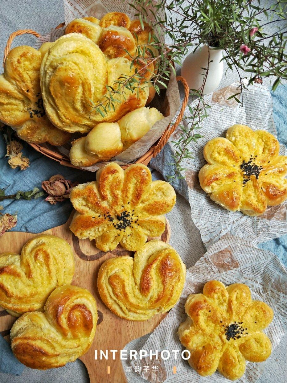 (南瓜椰蓉面包)从早上十点到下午四点,揉面,一发,整形,二发,烘烤,拍照,凑够九宫格,一张照片都舍不得删,不然真觉得对不...