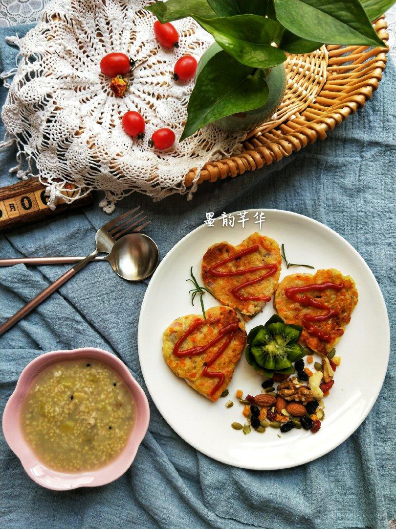 早餐有田园土豆饼(土豆,洋葱,胡萝卜,面粉,鸡蛋)小火慢煎,所以吃起来很爽口,...