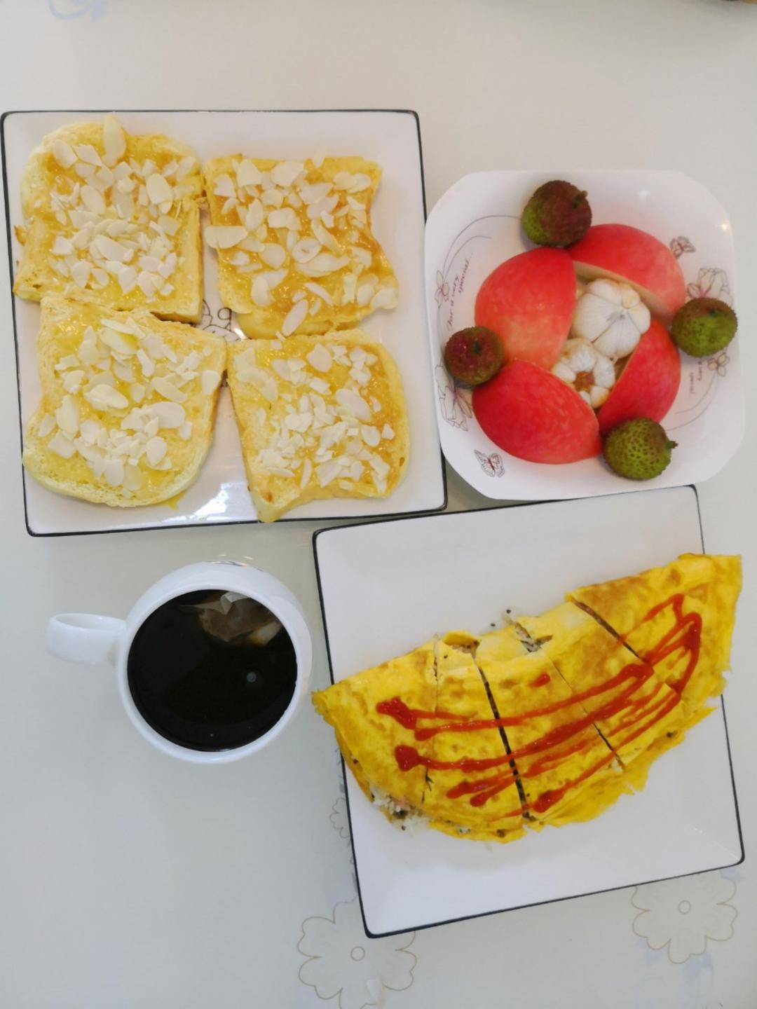 20190518早餐打卡:蛋包饭+岩烧土司+水果