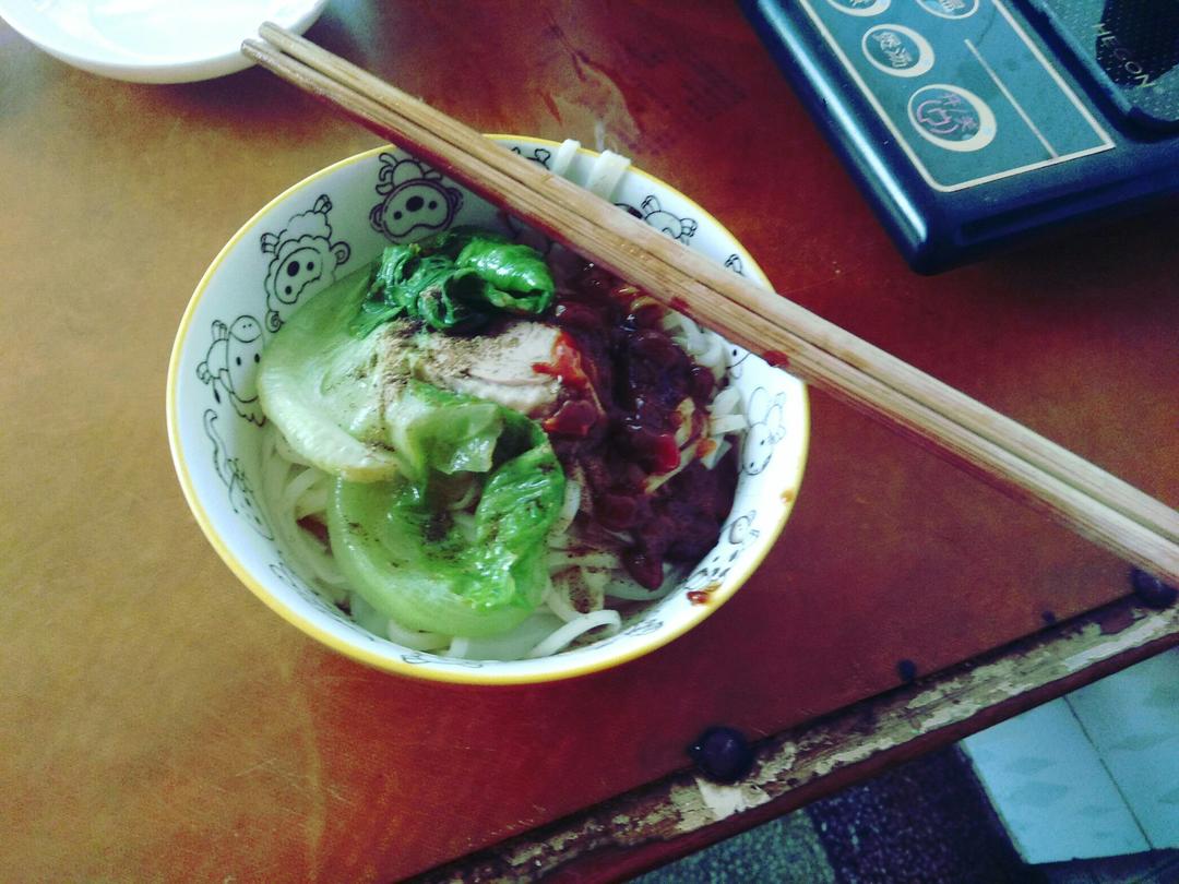 西红柿鸡蛋面,蒜泥青椒豆角忘拍了,连续吃了好几天面条,下次要换换口味了...