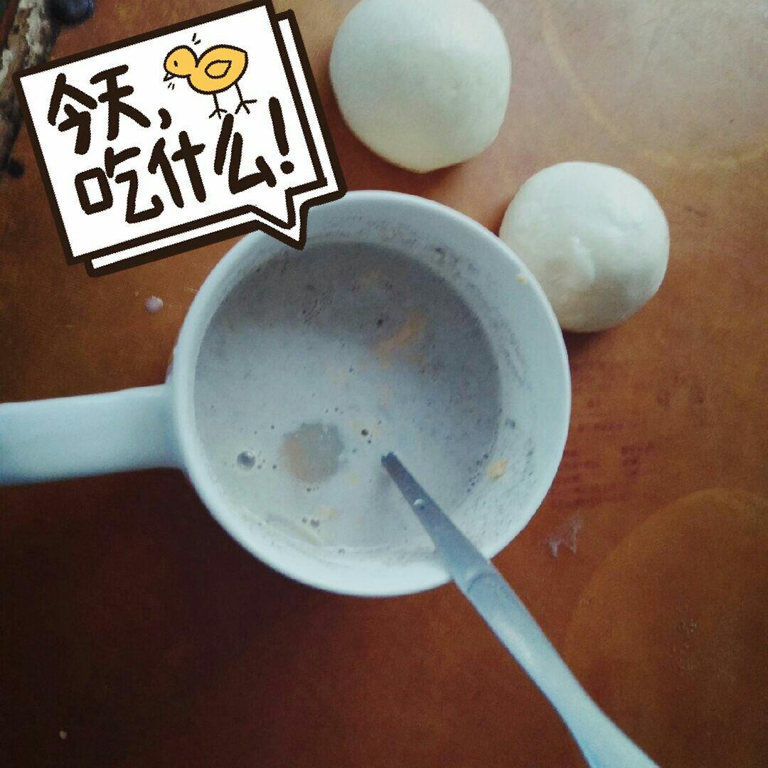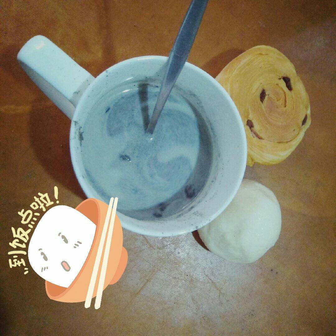 牛奶芝麻糊和两个豆沙包&鸡蛋,美味简单的早餐~