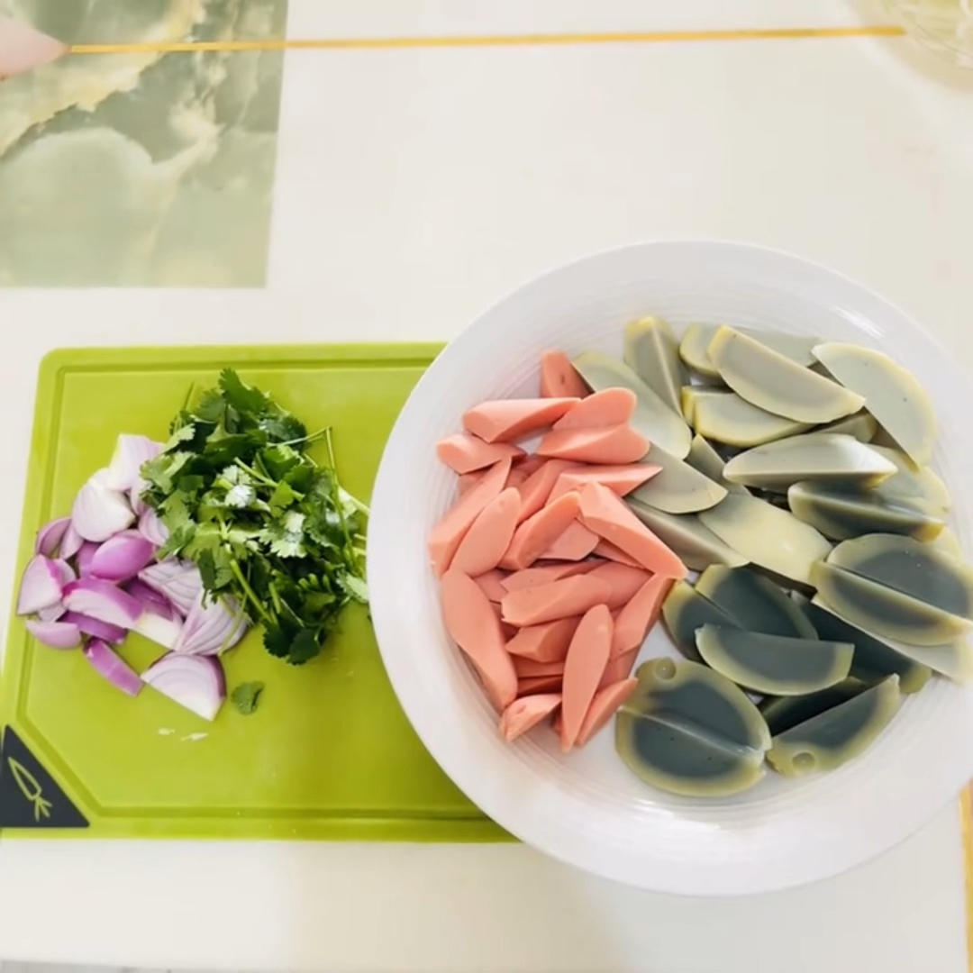 2.准备好需要的调料:洋葱、香菜、葱段