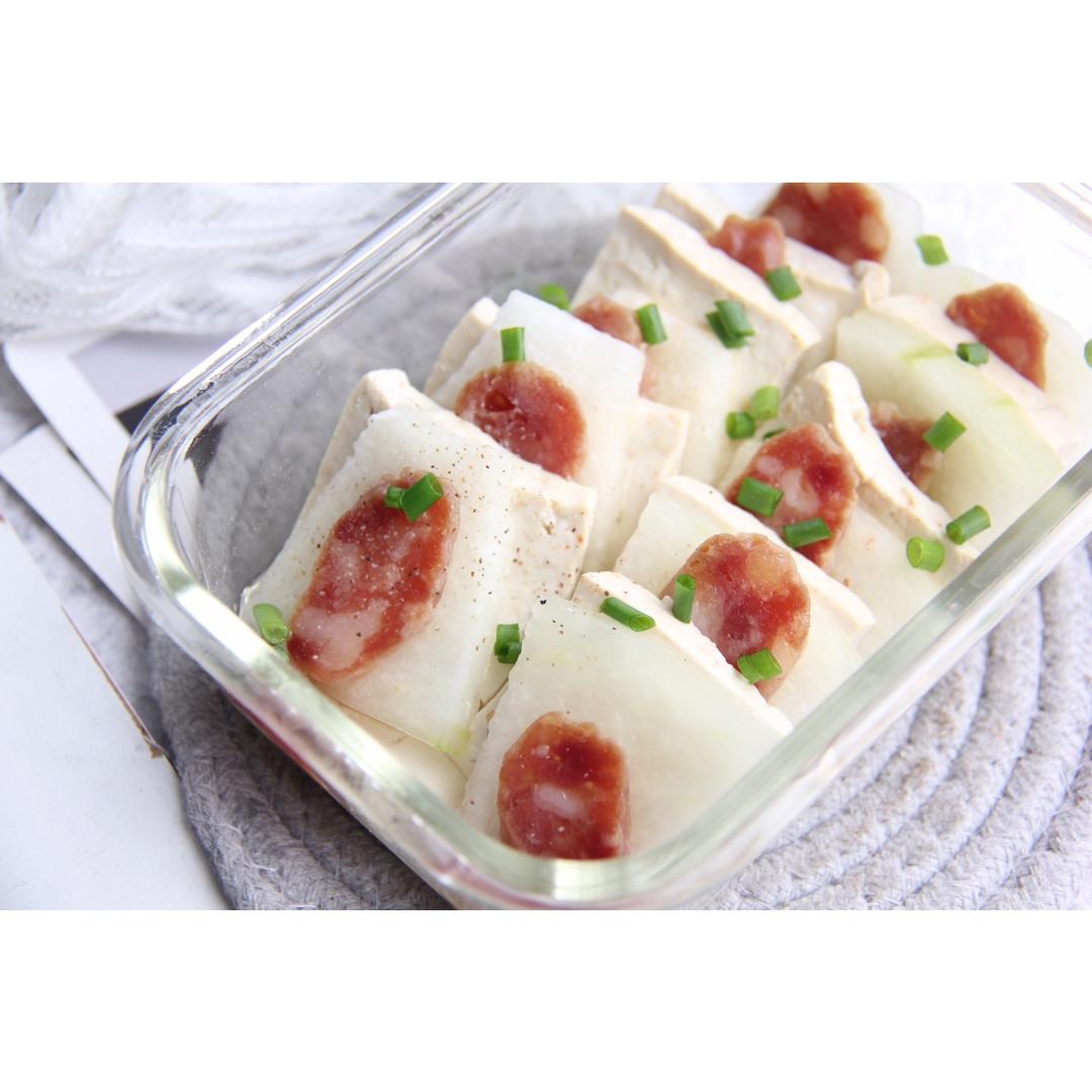不用加额外的调料,腊肠释放出来的鲜咸就能使冬瓜和豆腐足够美味啦...