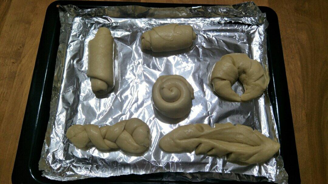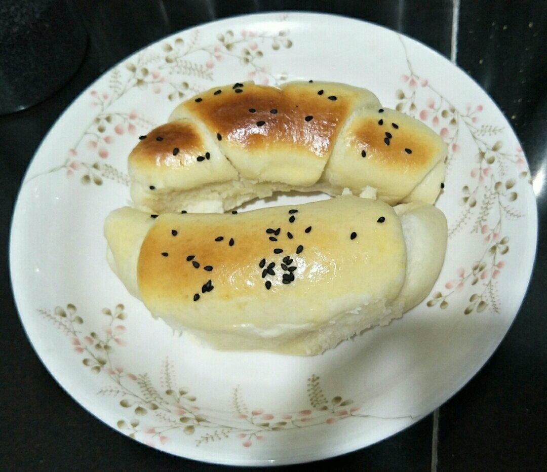 第一次做面包 用牛奶替代水,和面机和面,没有看见传说中的手套膜,但是依然松软好吃,整形真是技术活,需要多加练习。配方很好...