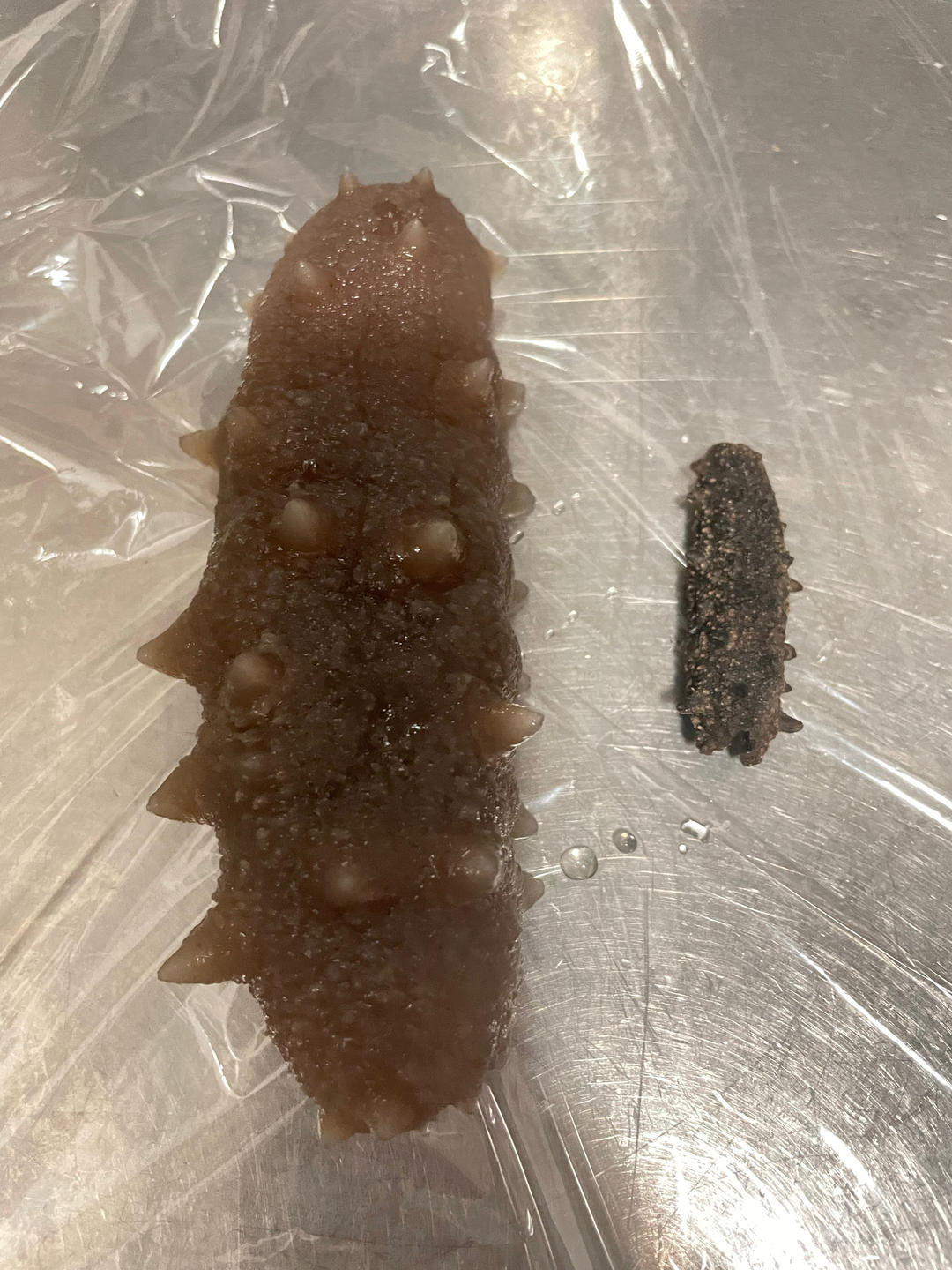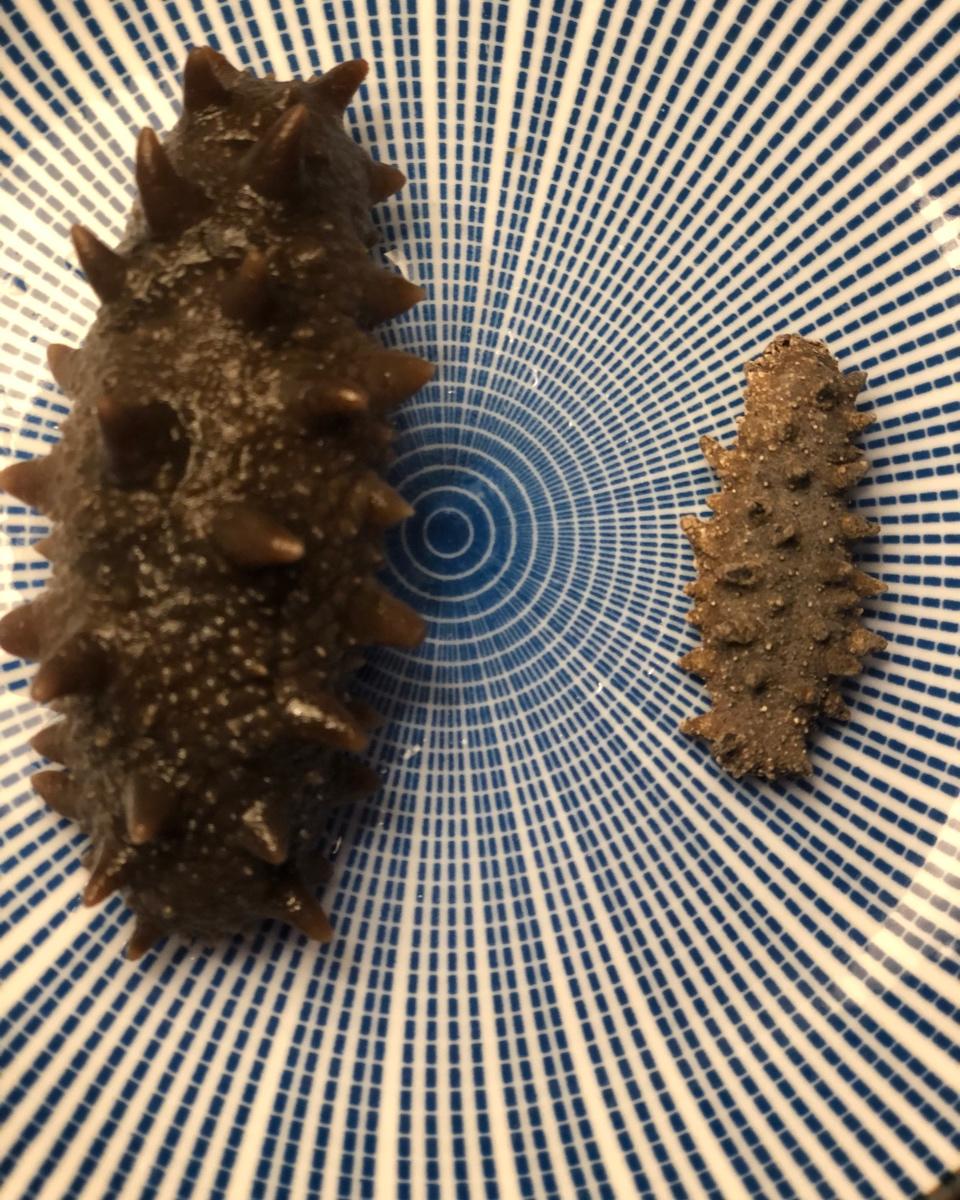第一次泡发海参,非常成功,以下是对比图,还有比这发得更大的