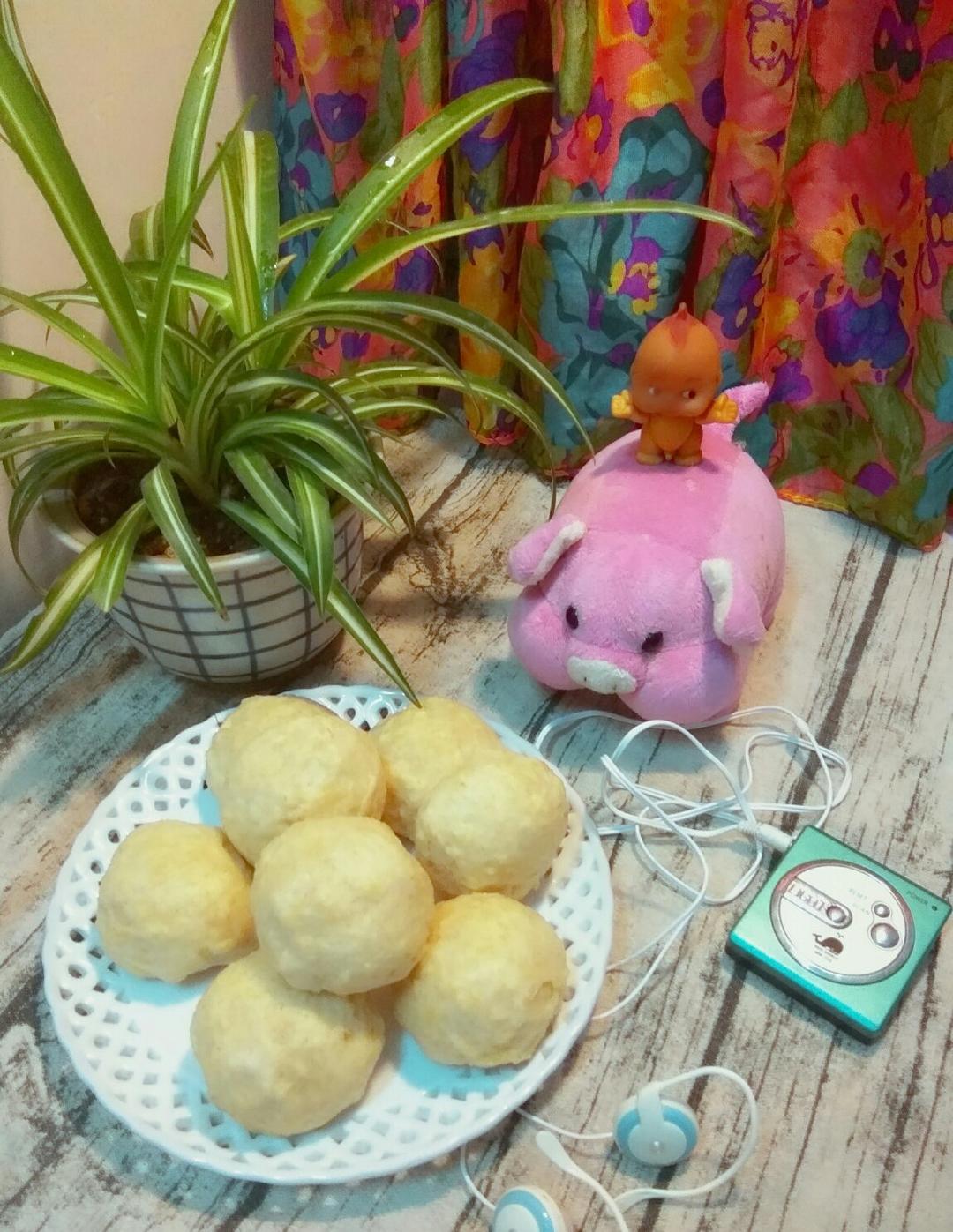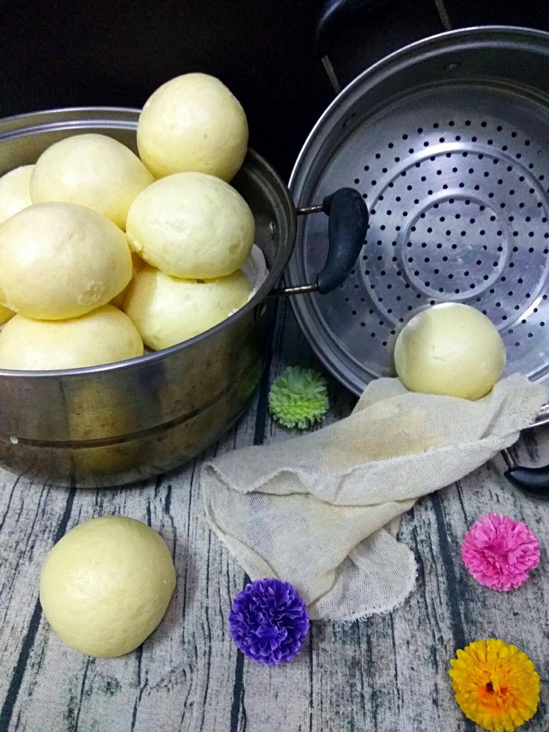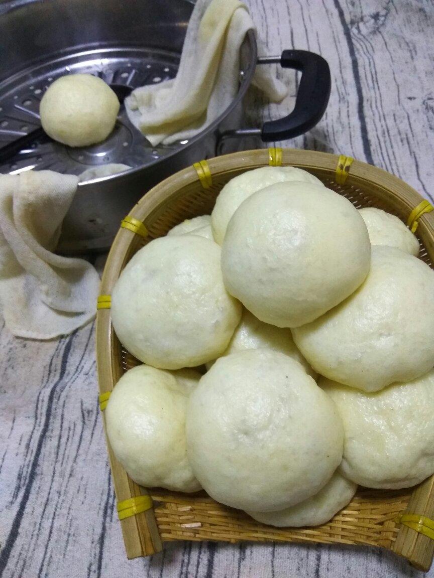 本着是要做葱花卷的,无奈蛋液加太多面粉揉不成团,只能将就蒸了一窝“肥白婆...