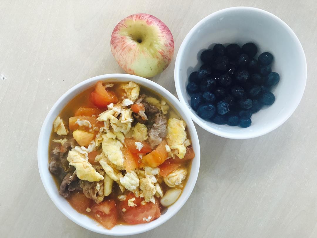 番茄鸡蛋面+水果