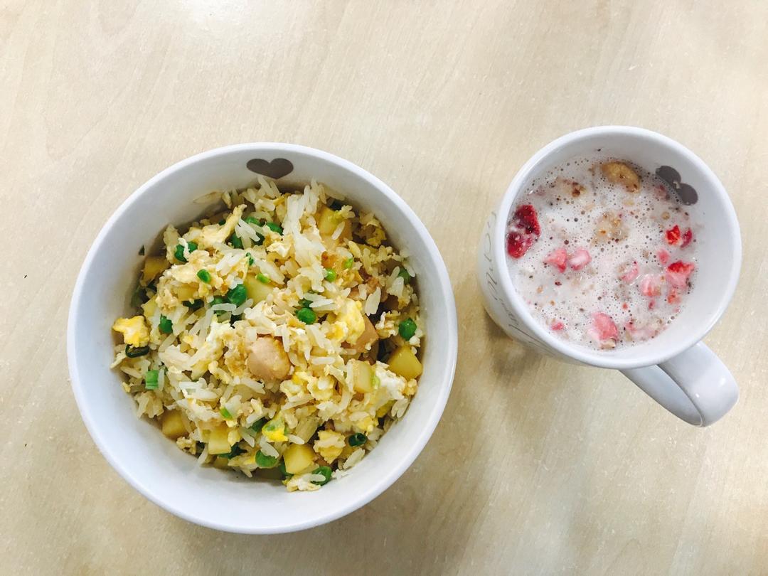 什锦蛋炒饭+香蕉牛奶麦片