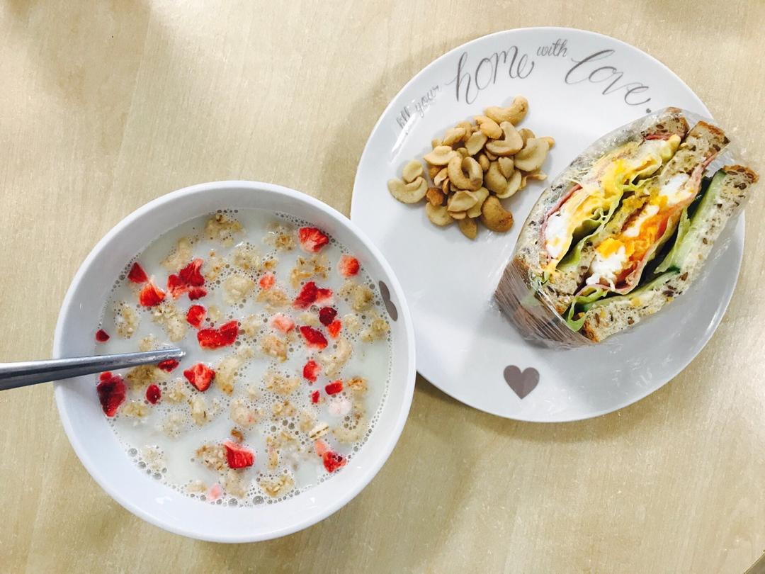 双蛋三明治+豆浆麦片+坚果
