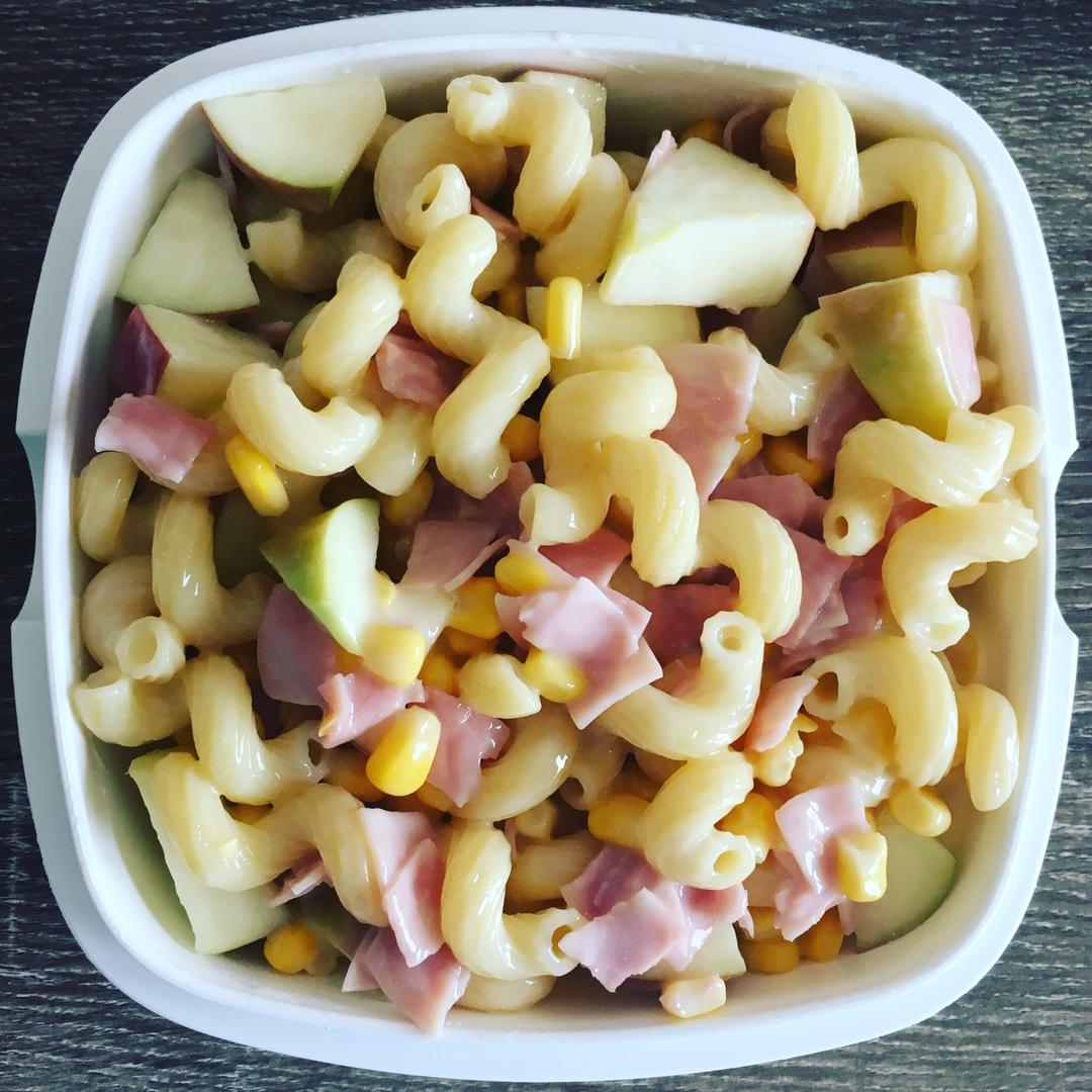 又到了晚飯時間,今天的晚餐是蘋果通心粉沙拉