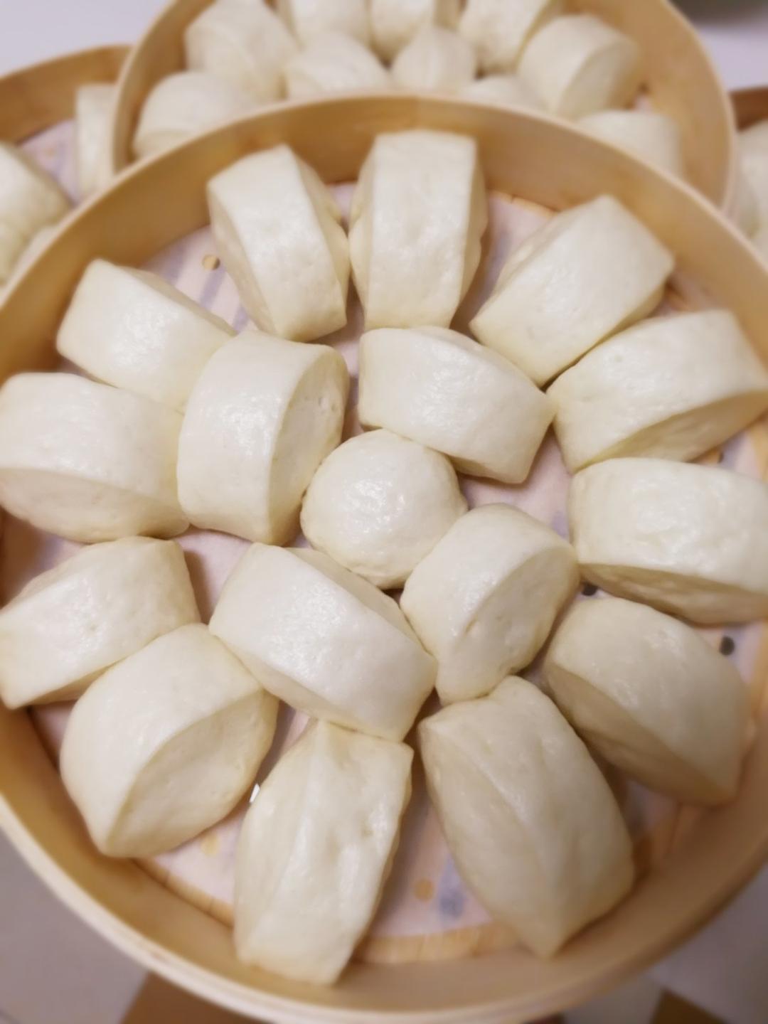 没有严格按量来,前后蒸半个钟,偏硬,不知啥原因,蒸的时间短or酵母粉放少了?