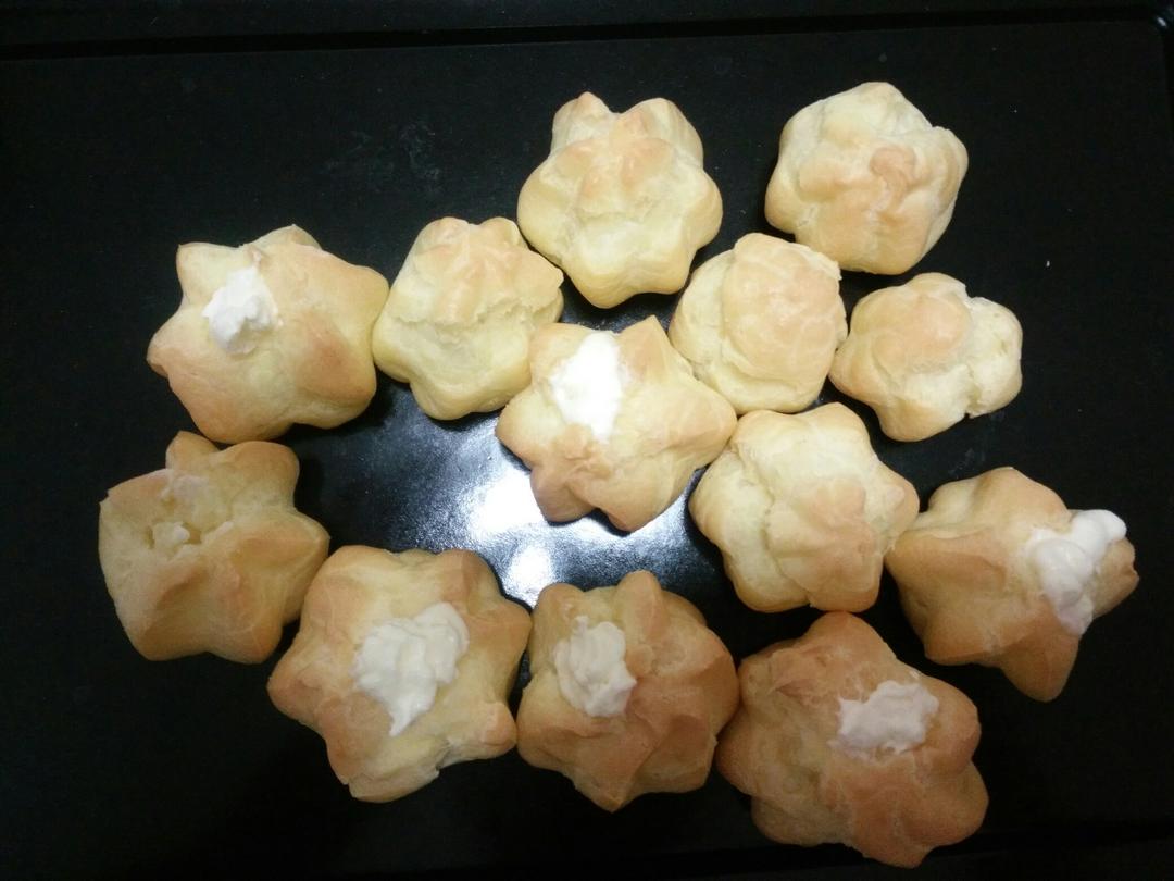 做乐自己最喜欢吃的奶油泡芙,泡芙皮很成功,但是为什么奶油挤进去就化乐?是我的奶油打发不到位...