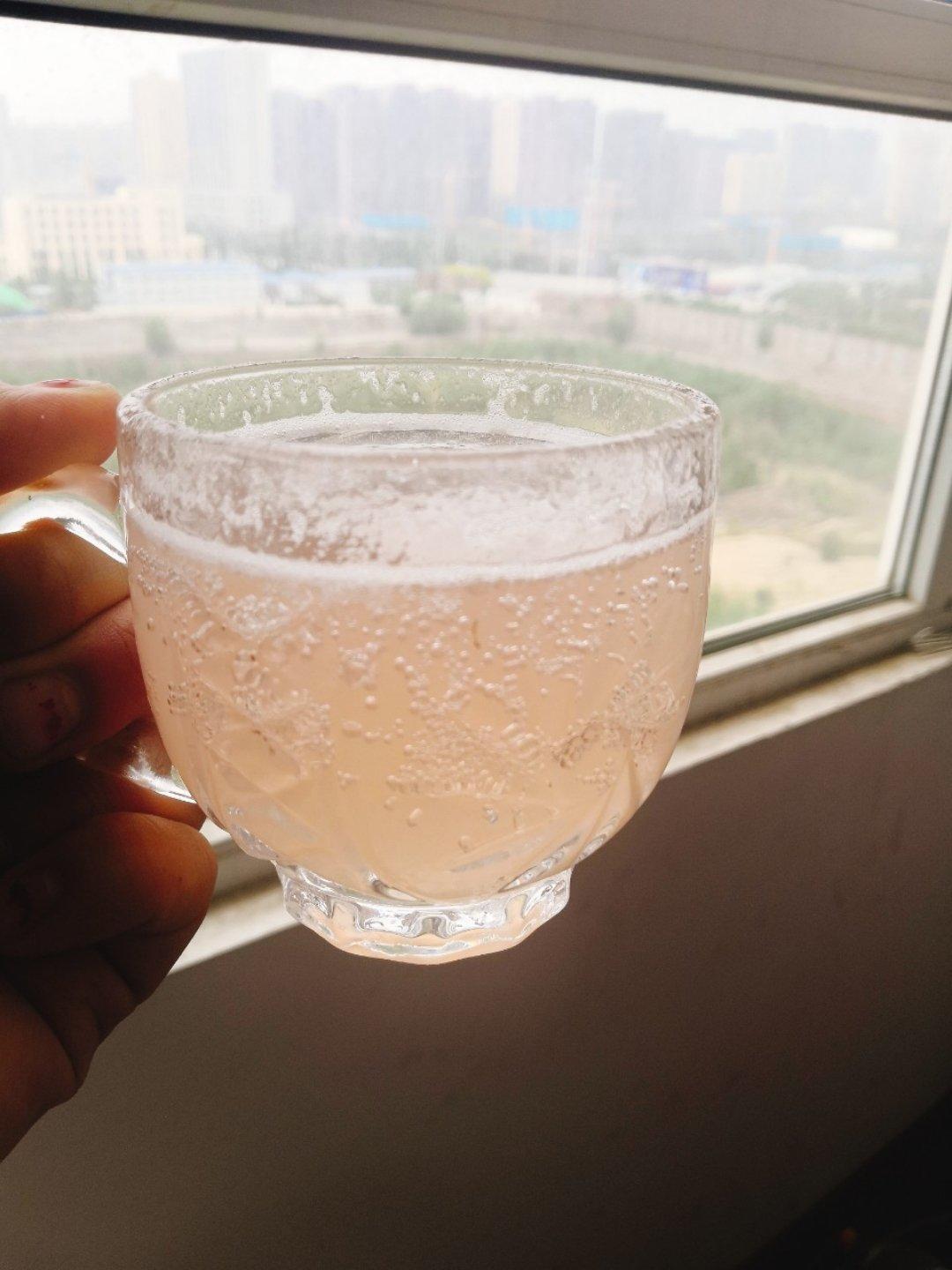 蜜桃气泡水加冰,自己调好,有出乎意料的分层,喝来别有一种意味。