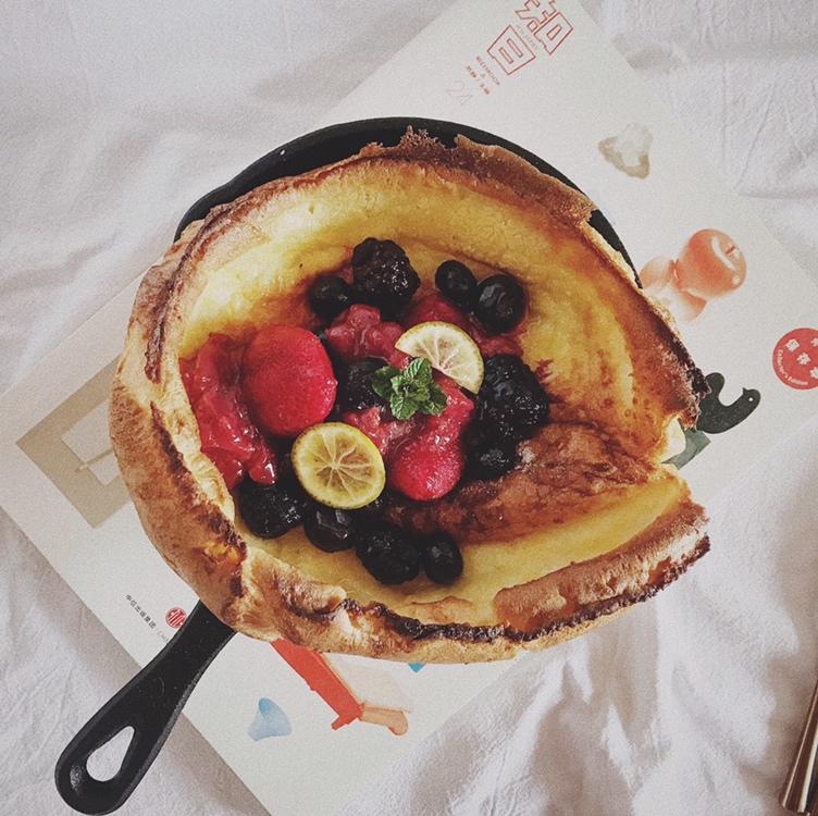亲愛滴👸🏻🌹甜蜜溫馨的假日時光優🍓🍎🍌☕️📖🌿看見下廚房的Dutch baby 👶🏼 👧🏻雖藍粉誘人😍😘😆但熱量太高啦!...