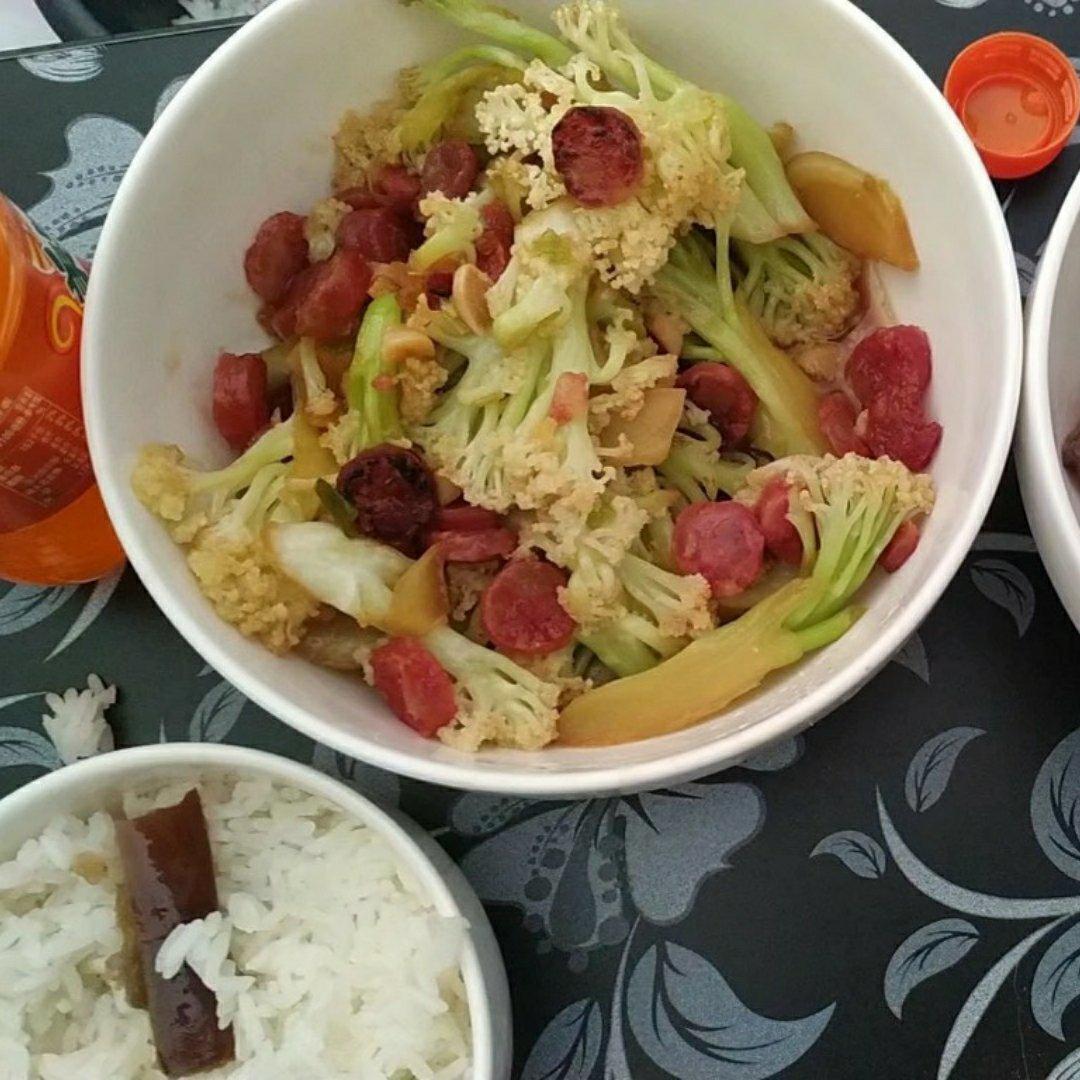 #腊肠炒花菜😊😌#