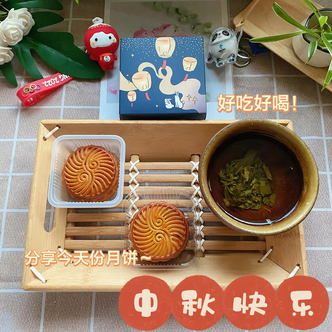 筒子们中秋快乐,平安喜乐🎑分享今日早餐:月饼🥮+茉莉花茶