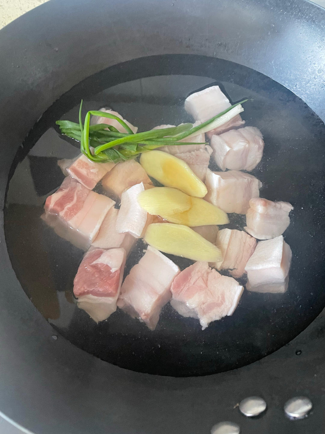 一勺料酒、两勺生抽、两勺老抽、两个姜片、三个香叶、两个八角、半块桂皮~