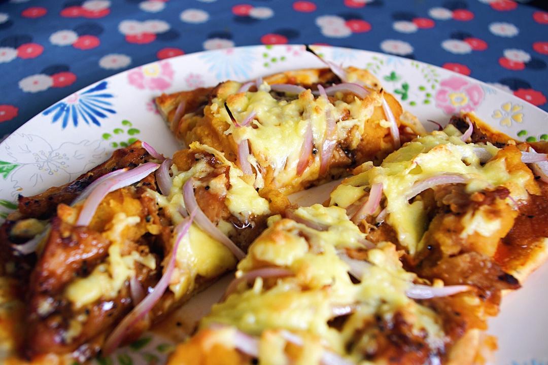 罗勒奶酪+黄椒+辣土豆泥黑椒烤鸡胸。