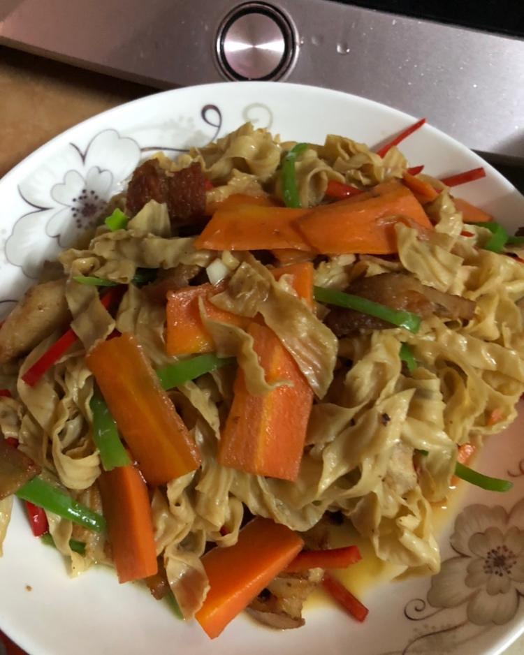 加了青红椒,微微辣,好吃。