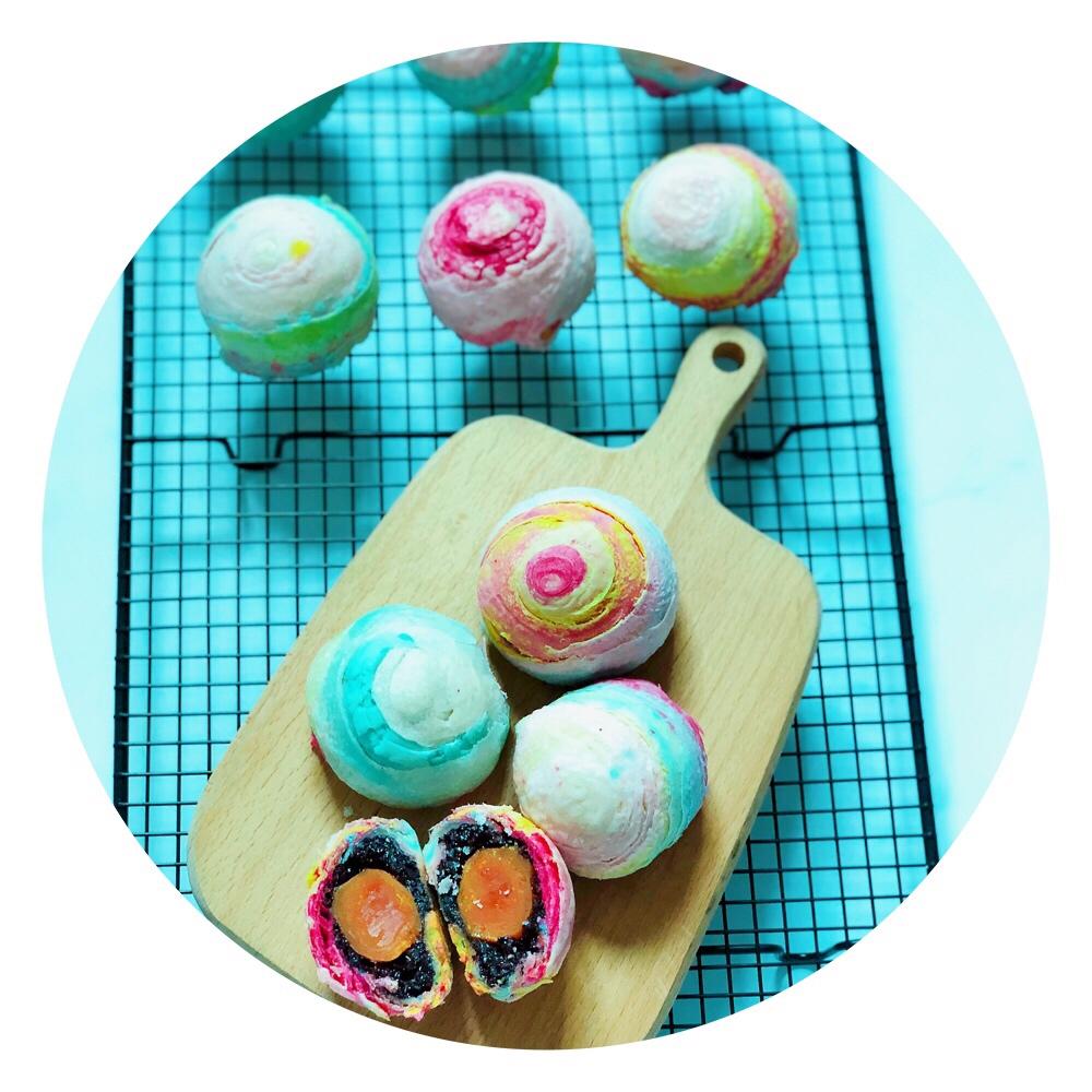 终于做出颜值高的🌈蛋黄酥,感觉下次颜色还可以做得更好