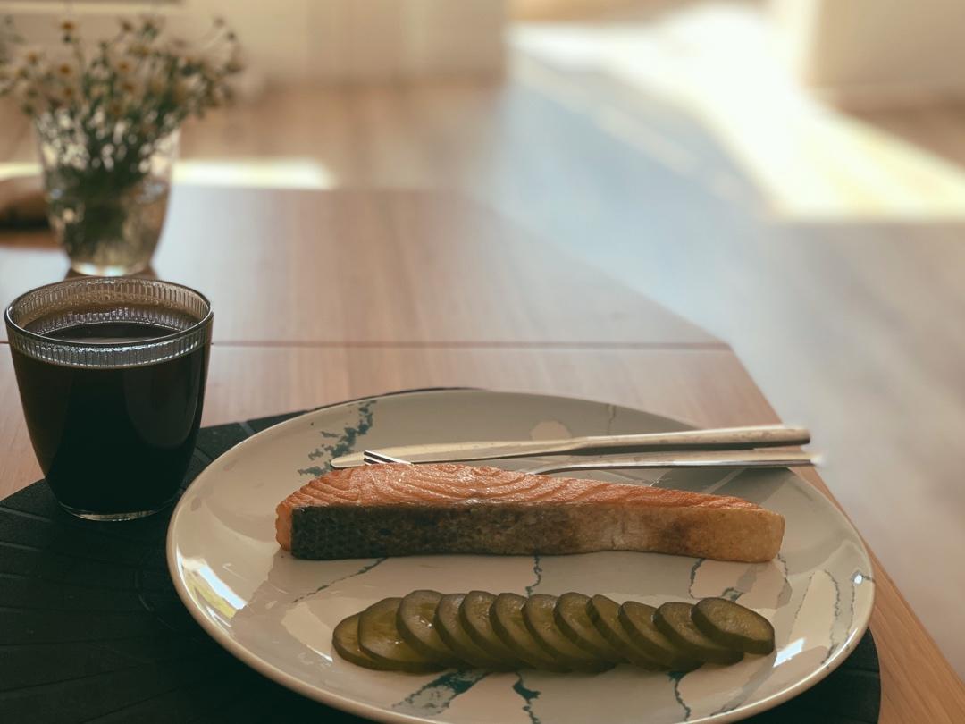简单好吃就数盐煎三文鱼了!配上小高姐的方子腌的小黄瓜,酸酸辣辣三文鱼的奶香焦香相得益彰~...