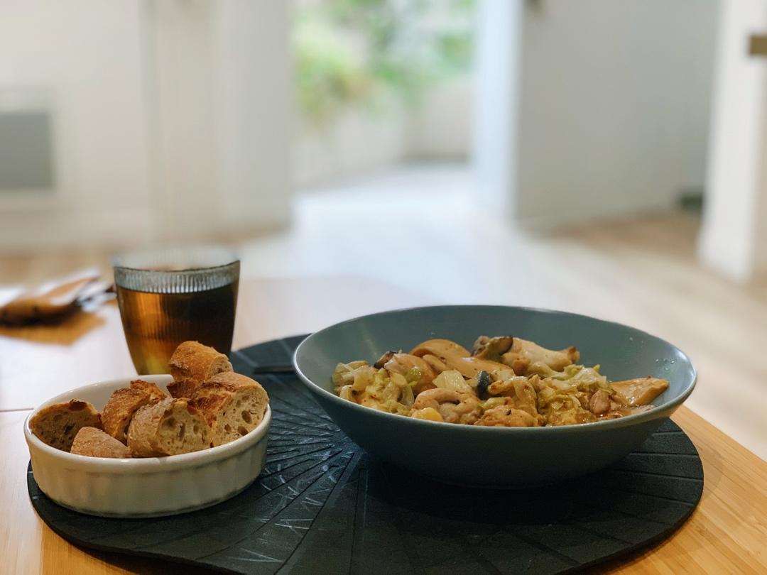 焖了个杏鲍菇鸡腿,复烤到外皮焦脆的小法棍,沾一沾里面的洞洞吸饱汤汁,吃起来真棒!#不负好时...