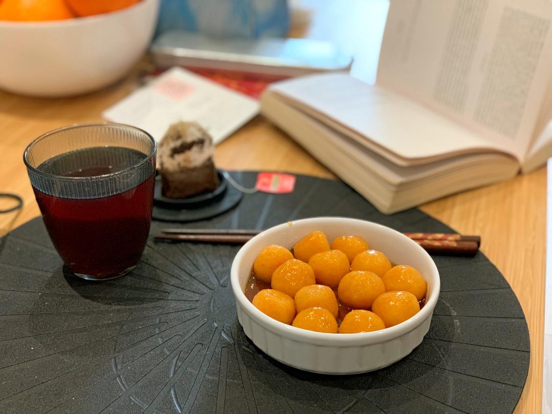 之前揉的南瓜糯米团,本来打算配红豆汤来吃的,突然想吃糖油粑粑了,就用这个吧,软糯香甜,跟...