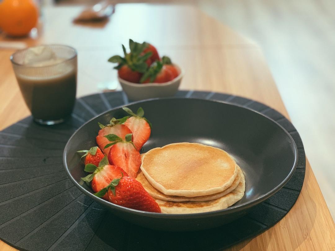 昨晚拌的面糊丢冷藏,今早起来煎一煎也是很方便快手,在锅里还会鼓大泡,挺可爱的,吃起来软乎...