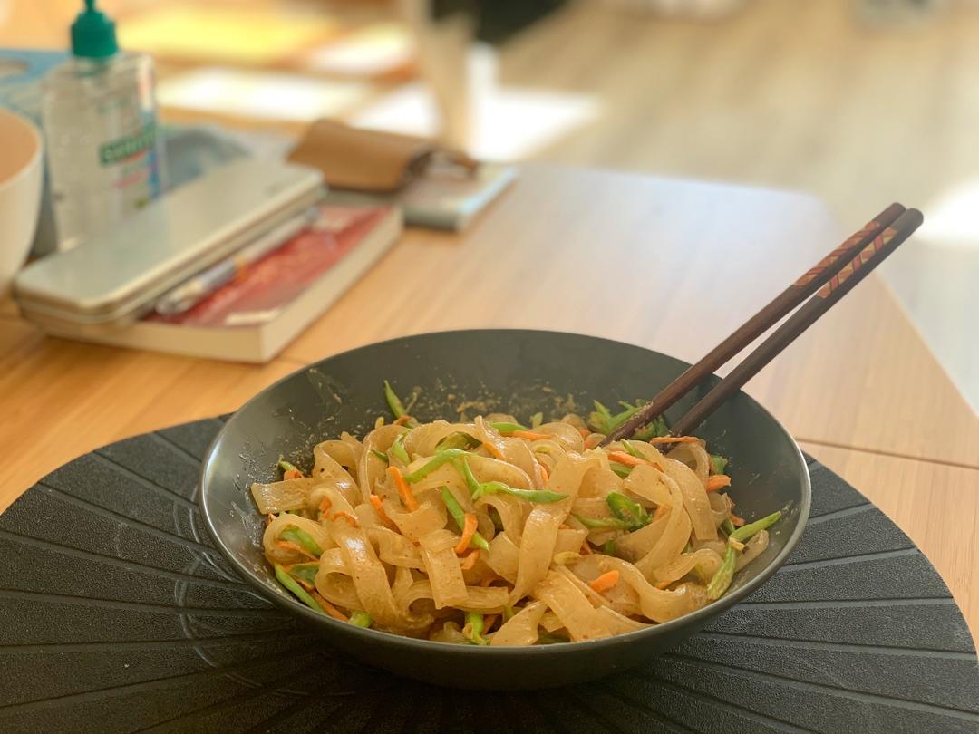 单独炒了扁豆胡萝卜丝做配菜,酱汁调的少了 ,宽粉有点粘在一起,不过是好吃开胃的!#不负好时...