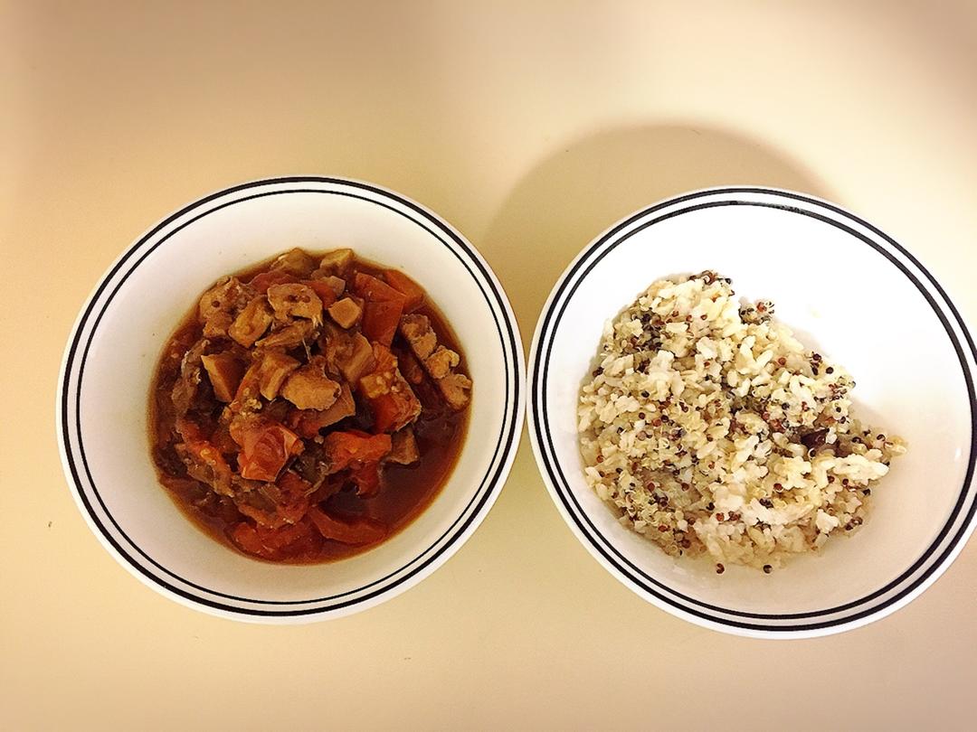 茄子杏鲍菇鸡肉西红柿 不加酱油好了🤔 再来一杯抹茶牛奶